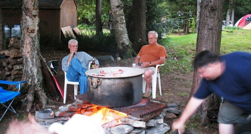 The camp fire doing double duty with the lobster pot. Zim's son Jeff is boiling up the girls for dinner. Another Custer photo